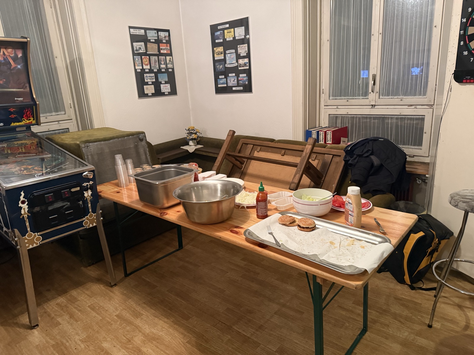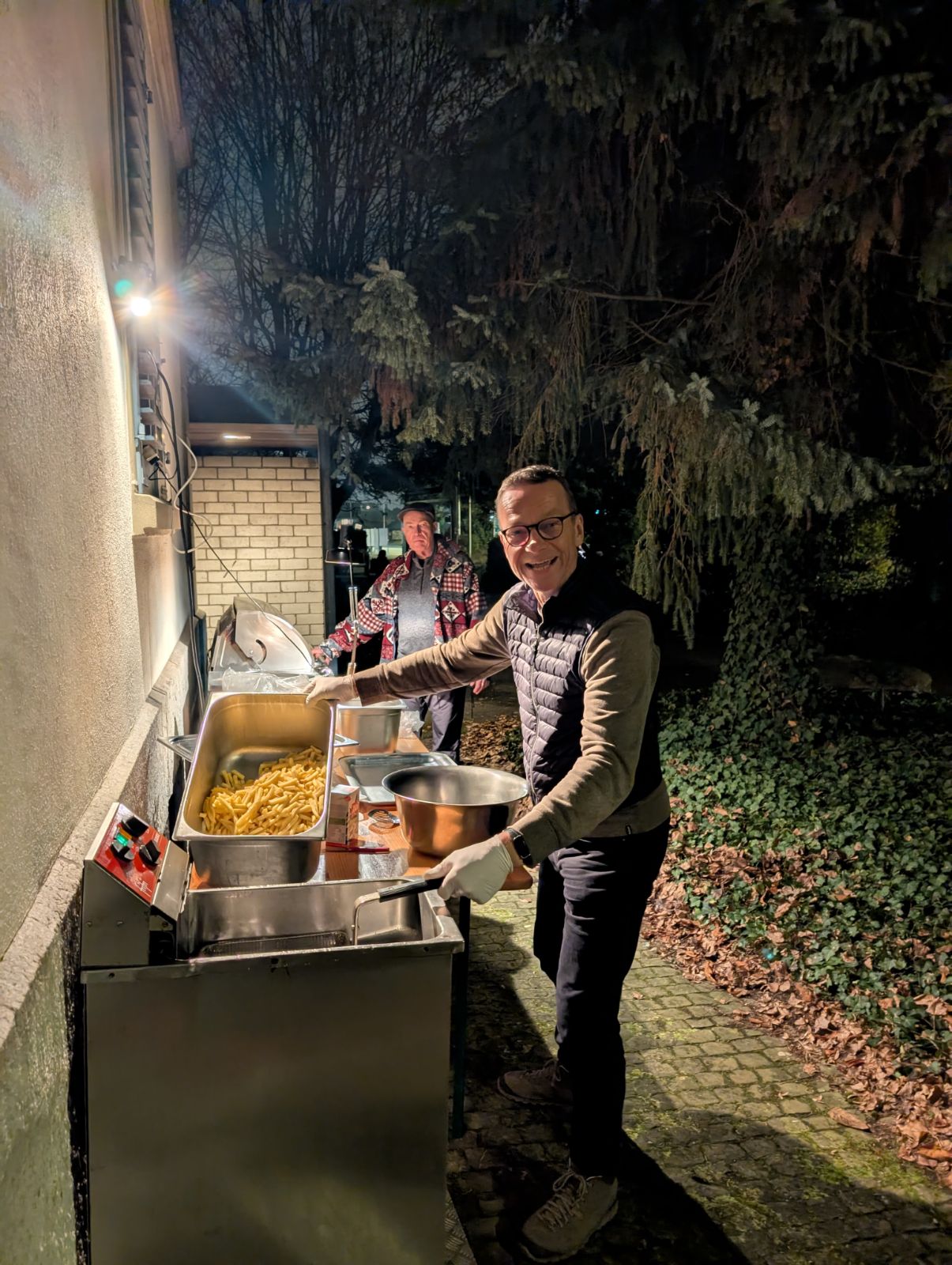 Das OK traf sich bereits um 16.00 Uhr im Clubhaus, damit alles rechtzeitig bereit war. Bevor jedoch Messer, Zwiebeln und Salate zum Einsatz kamen, stand noch ein wichtiger Punkt auf dem Programm. Der Einkauf für die beliebten Hamburger im Coop. Danach lief alles wie am Schnürchen. Ein Teil des Teams bereitete die Räumlichkeiten vor, während die anderen den Grill und die Fritteuse in Betrieb nahmen.